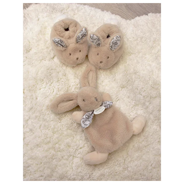Doudou Coffret cadeau beige Lapin en peluche et chaussons