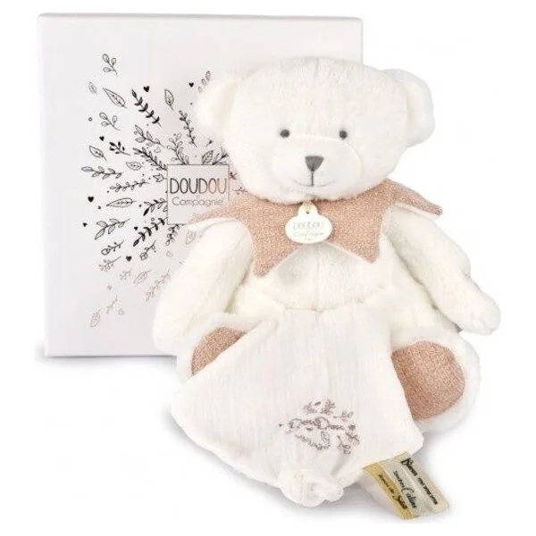 Doudou Coffret Cadeau Ours en Peluche avec Couverture 30 cm beige