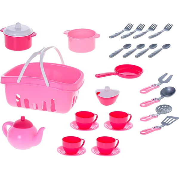 Ensemble de cuisine avec panier + 23 pièces de vaisselle