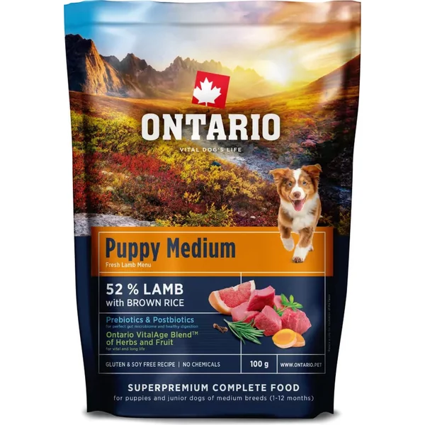 Échantillon Ontario Puppy Medium Agneau & Riz Brun 0,1kg