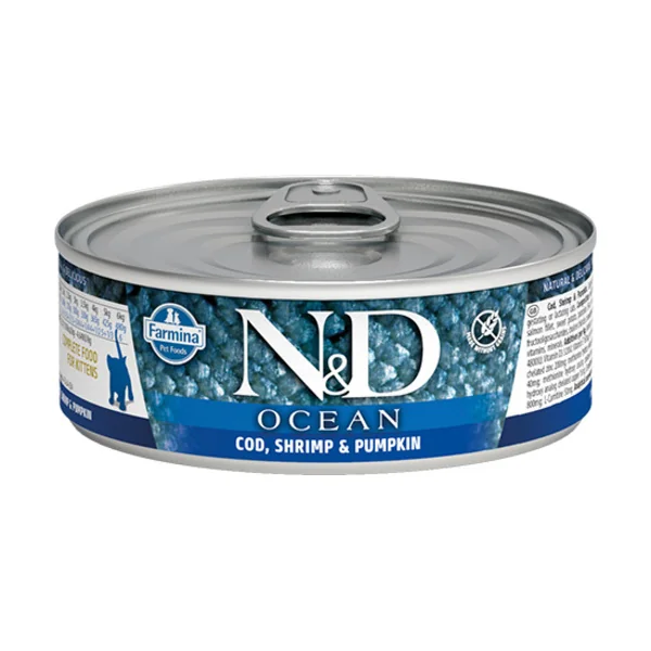 N&D CAT OCEAN THON, MORUE, CREVETTE & CITROUILLE CHATON 70 GR