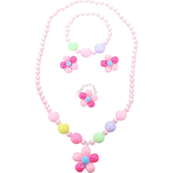 Collier et bracelet perles licorne bois/plastique 20cm
