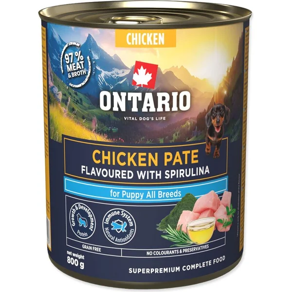 Conserve Ontario Puppy pâté de poulet à la spiruline 800g