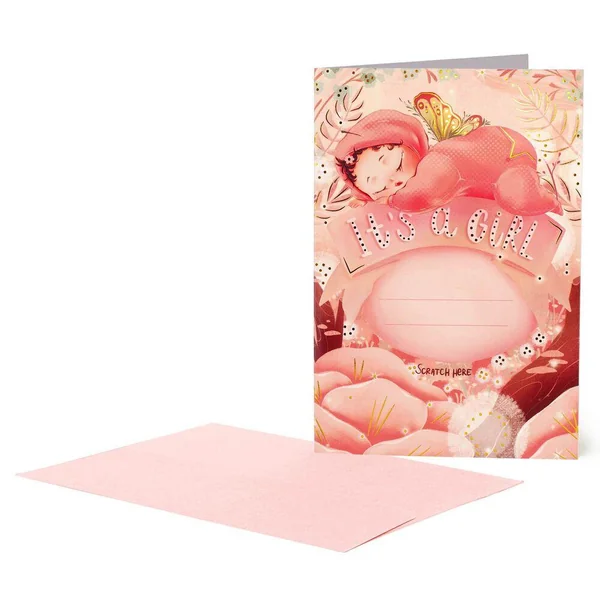 SCRATCH REVEAL GREETING CARD – SCRATCH OFF CARD – IT’S A GIRL – GIRL