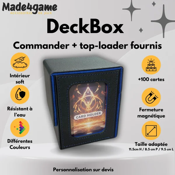 DeckBox Commander 100+ avec Toploader – Noir et Bleu
