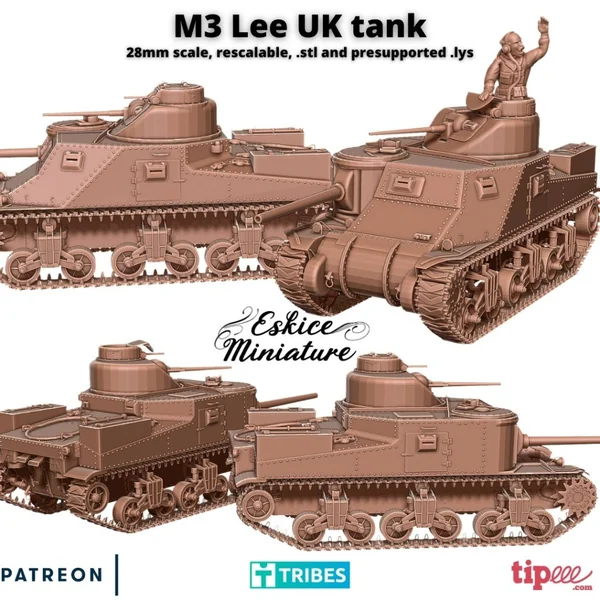 Eskice Miniature – WWII – M3 Lee tank with pilot – 28mm