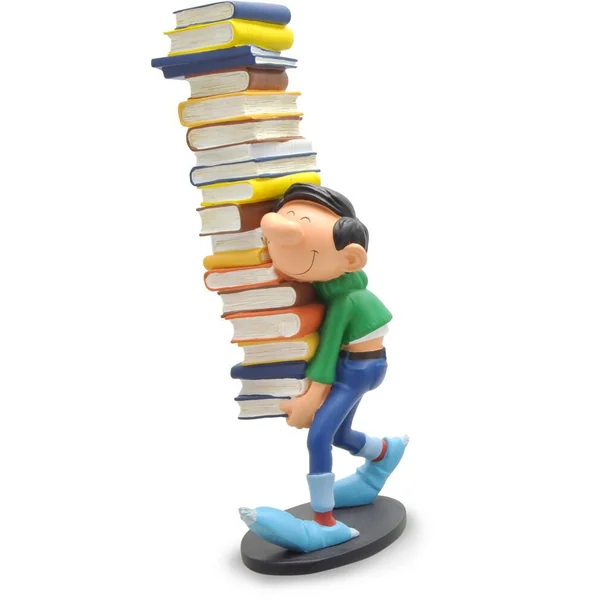 FIGURINE DE COLLECTION GASTON PORTANT UNE PILE DE LIVRES
