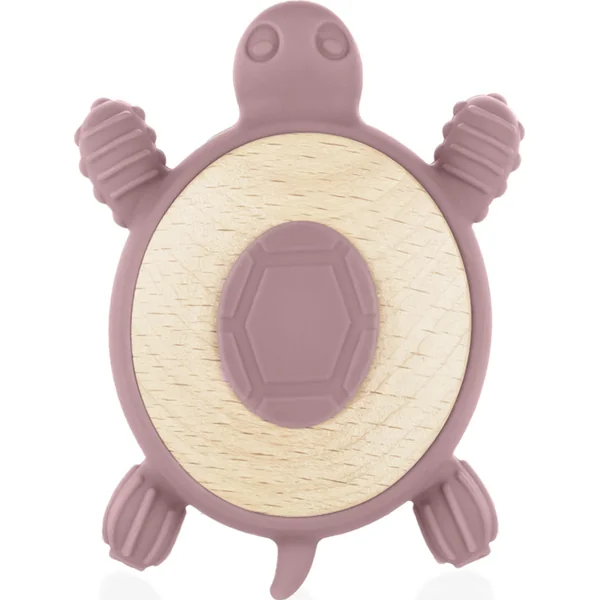 Anneau de dentition en bois et silicone Turtle, Old Pink