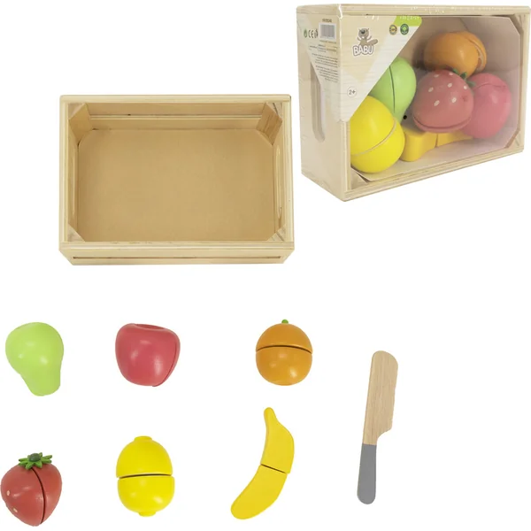 BABU – Fruits à découper en bois dans une caisse