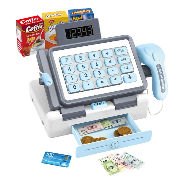 Caisse enregistreuse avec effets bleue 25 cm