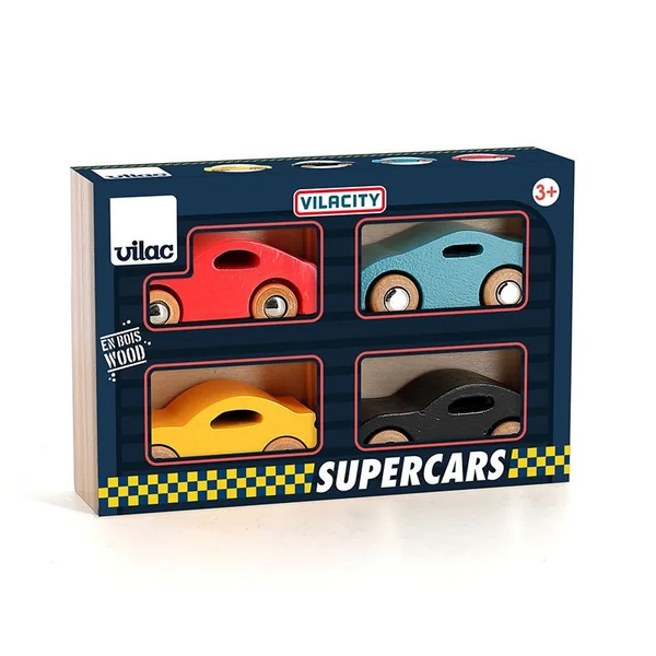 Coffret de 4 voitures en bois Super cars Vilacity – Vilac
