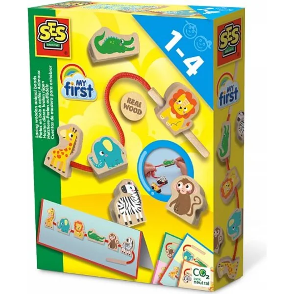 Ses Mon premier enfilage de perles en bois d’animaux