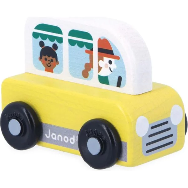 Janod Cross roads Voiture en bois à pousser Camionnette jaune