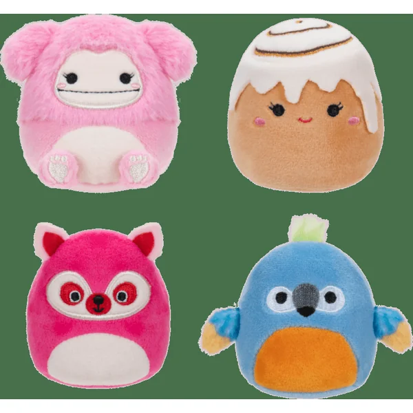SQUISHMALLOWS Micromallows 4Pack – Raton laveur, Bigfoot, Ara, Roulé à la cannelle