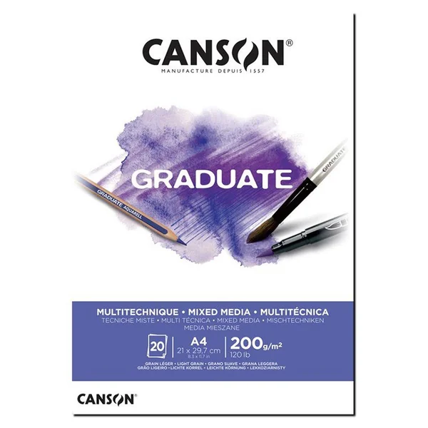 CANSON Bloc dessin blanc Graduate Mix Media 20 feuilles 200g A4
