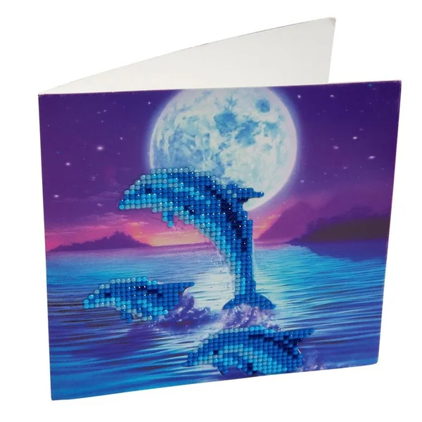 CRYSTAL ART Kit carte broderie diamant 18x18cm-Dauphins