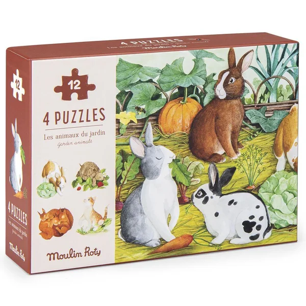 4 MINI PUZZLES DES ANIMAUX (4X12 PIECES) LE JARDIN DU MOULIN