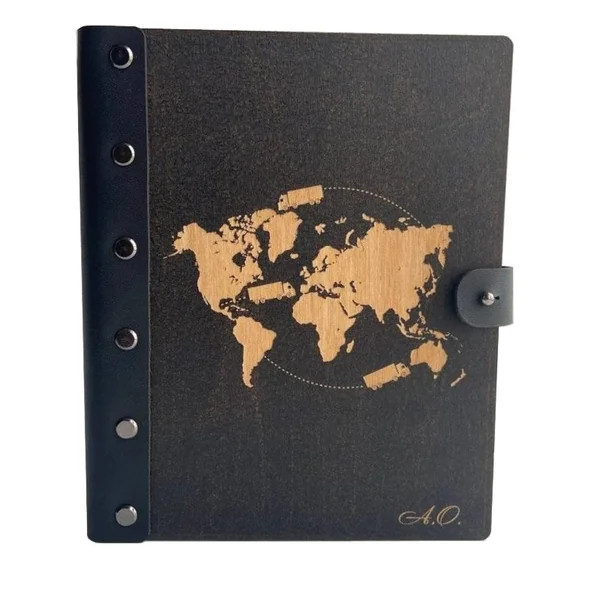 Carnet en bois relié cuir MapMonde Creatif’Note – Creatif Wood