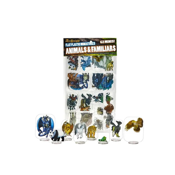 Flat Plastic Miniatures – Animals and Familiars – 62 Pieces