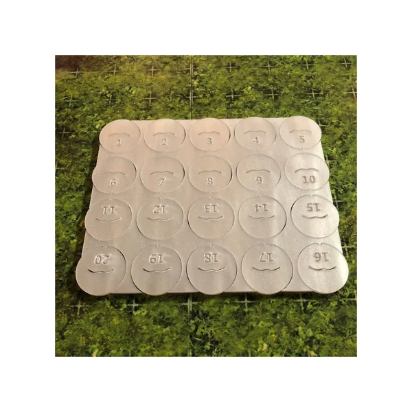 Flat Plastic Miniatures – Colored Bases Etched Numbers 1-20 – Clear