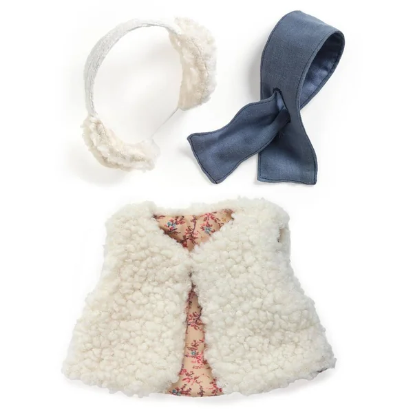 ROBE EN JEAN ET GILET – 38 CM