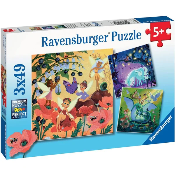 PUZZLES 3X49 PIECES – LICORNE, DRAGON ET FÉE