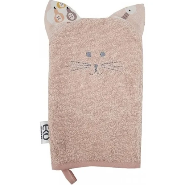 EKO Gant de toilette en coton avec oreilles Cat Rose pink 20×15 cm