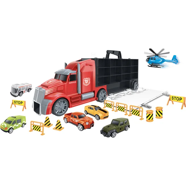 CITY SERVICE CAR – Camion avec voitures et hélicoptère 55 cm