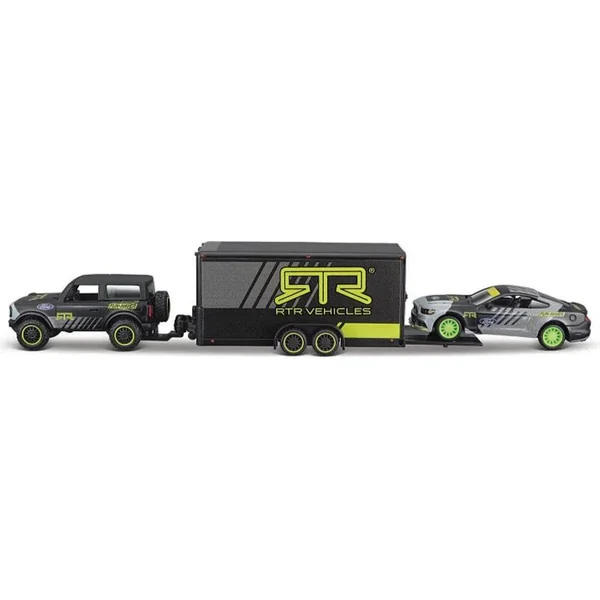 Maisto – Design Team Haulers, 2021 Ford Bronco, Remorque de voiture, 2015 Ford Mustang GT, 1:64