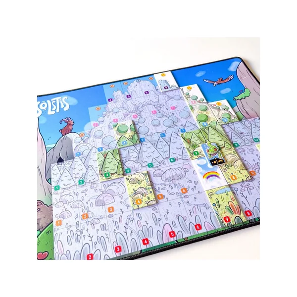 Solstis est un magnifique petit jeu pour 2 joueurs. Le placement de vos tuiles à leur bonne position dans la montagne est parfois un peu approximative.