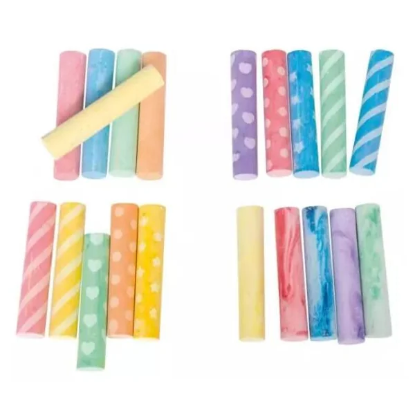 Pour dessiner sur le sol ou sur les murs, tout un monde à soi…20 craies de 6 couleurs à motifs géométriques, paillettées ou marbrées contenues dans un seau, facile à ranger et à transporter, avec instructions pour réaliser différentes sortes de marelles.
