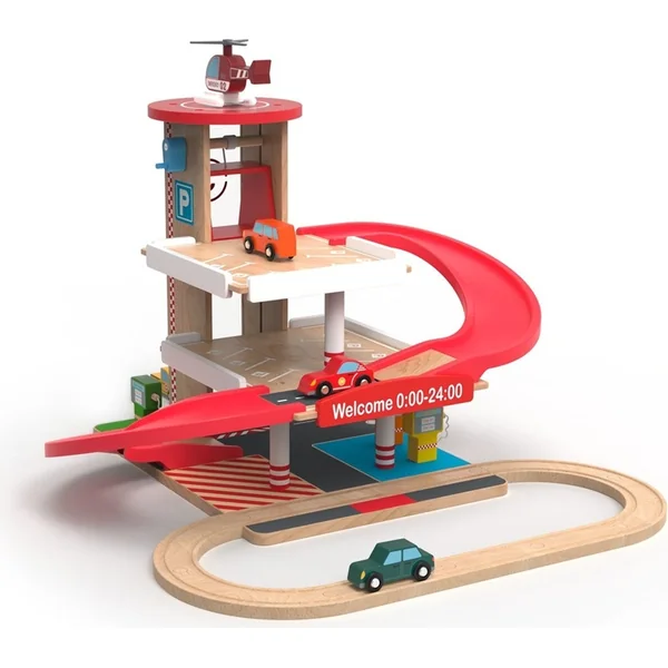 2Kids Toys Garage en bois avec circuit de train