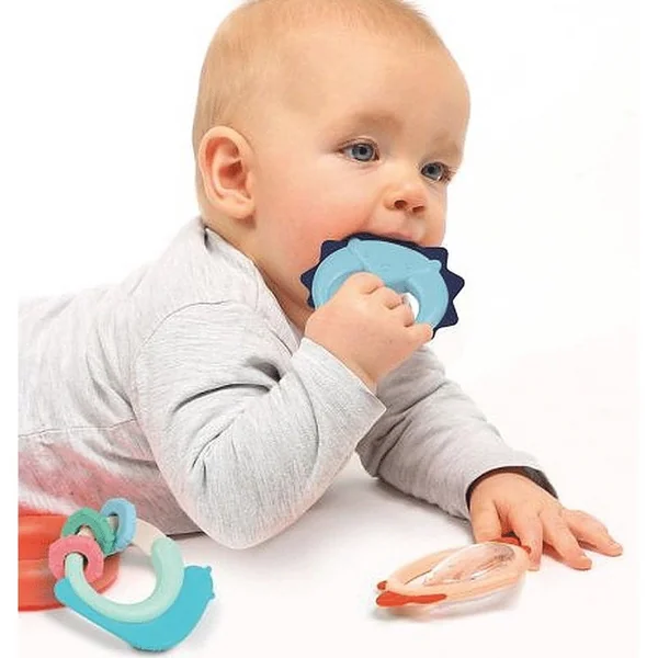 Chaque hochet possède un élément en plastique doux et souple, pensé pour les mordillements. Ils soulagent les petites dents de bébé qui aime les porter à la bouche. Solides, ils résistent aisément aux gestes brusques et sont très pratiques pour une hygiène parfaite.