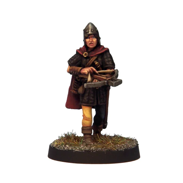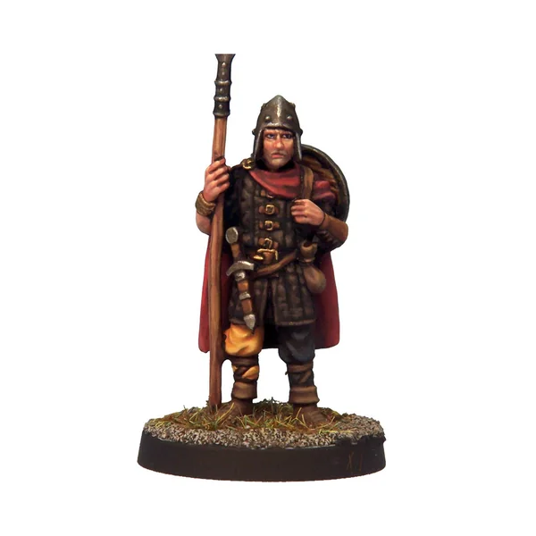 Trois fiers membres de la garde municipale. Ils portent une veste en cuir rembourrée et un casque en acier « barbute ». Armés d’une épée, d’une lance et d’une arbalète légère, ils sont protégés du froid nocturne par une cape. Ce blister contient :