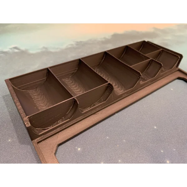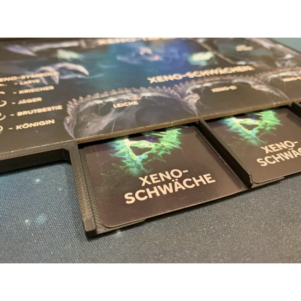 Avec ce tableau de bord Alien, vous aurez une meilleure organisation sur la table de jeu. Vous pouvez ranger les différents jetons Alien dans des compartiments séparés. Vous avez des jetons dans des capsules de numismates. Pas de problème, ils peuvent également être rangés dans les compartiments. C’est un organisateur pratique auquel le scanner peut être fixé latéralement.