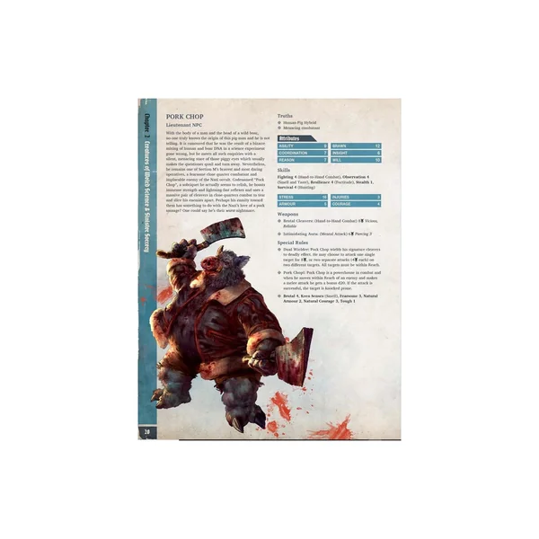 La section Creatures of Weird Science and Sinister Sorcery présente de nouveaux individus, unités et entités directement impliqués dans la Guerre Secrète. Certains, comme Pork Chop ou Headless Harry, sont des alliés de la Section M et de Majestic, tandis que d’autres, tels que les Zaubererjäger du Soleil Noir ou le redoutable Juggernaut de Nachtwölfe, représentent de puissants adversaires.