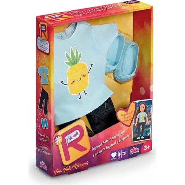 - Ce set comprend un t-shirt avec des fruits, un jean confortable et des chaussures Dolly.