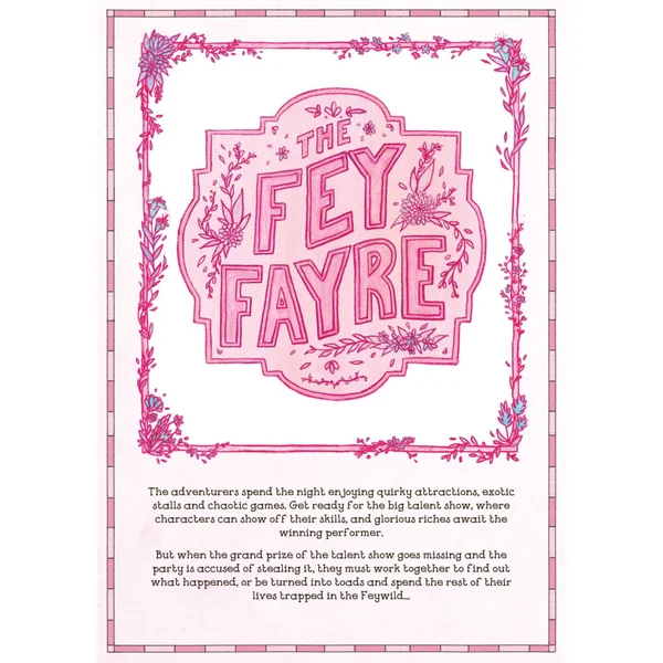 Des visites féeriques à la Fey Fayre, à l’enquête au cœur du Spike Patch Grove chez les gaterfolk, en passant par des trajets hantés en train et bien plus encore — ce recueil de jeux en une séance regorge d’aventures pleines de charme à vivre entre amis !
