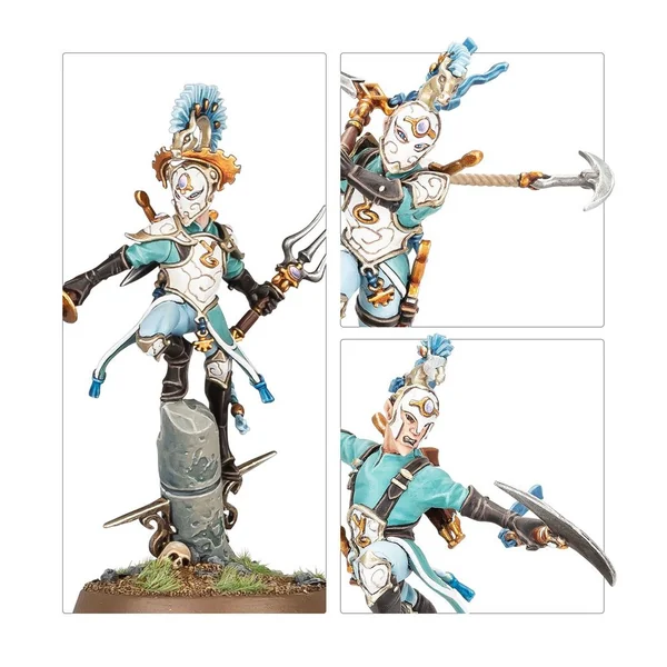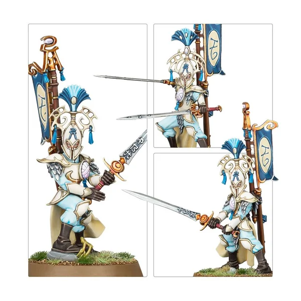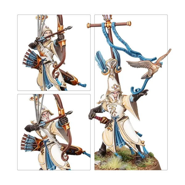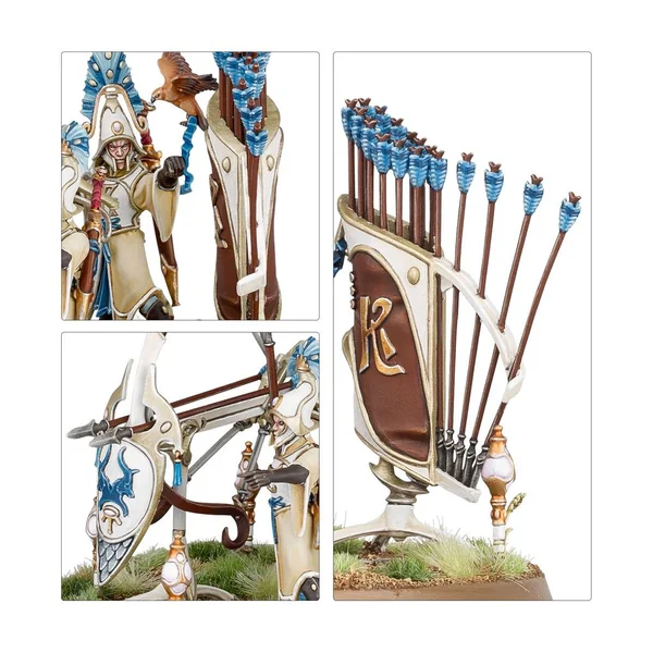 Les figurines de cette boîte sont faciles à personnaliser. La Baliste Astrécharde peut être assemblée avec un choix de deux ensembles de traits, et un des servants peut être assemblé avec les deux mains sur la pièce d’artillerie ou avec un gerfaut-oracle. Les Maîtres des Lames Vanari incluent les éléments nécessaires pour assembler un champion masculin ou féminin, armé d’une grande lame ou de lames doubles, et avec un choix de deux têtes: une casquée et une nue. Le kit polyvalent des Lames Ydriliennes permet d’assembler un champion avec des lames, des fléchettes ou un vouge. Un des membres de l’unité peut être assemblé avec une serpe encordée ou des lames doubles, et un autre avec une lame et une dague ou des lames doubles courbes. Les Sentinelles Auraliennes Vanari incluent les éléments nécessaires pour obtenir un champion optionnel qui peut être assemblé avec un gerfaut-oracle, une lanterne ou la main gauche vide. Le kit permet d’assembler six Sentinelles masculines avec six têtes interchangeables (réparties en trois modèles différents) et quatre Sentinelles féminines avec quatre têtes interchangeables (réparties en deux modèles différents). Les Gardes Auraliens Vanari incluent les éléments nécessaires pour assembler deux champions optionnels, dont un peut être utilisé en jeu. Chacun est équipé d’une épée ou d’un sceptre d’office dans une main, et dispose d’un choix de deux têtes, une casquée et une nue. Le kit propose six têtes féminines (réparties en trois modèles) qui sont interchangeables sur les quatre corps féminins (répartis en deux modèles), et huit têtes masculines (réparties en quatre modèles) qui sont interchangeables entre les six corps masculins (répartis en trois modèles différents). Ce kit contient 20 boucliers (répartis en 10 modèles) qui sont interchangeables entre toutes les figurines. Ce kit est composé de 410 éléments en plastique, de 1x Socle Rond Citadel de 80mm, de 1x Socle Rond Citadel de 40mm, de 30x Socles Ronds Citadel de 32mm et de 5x Socles Ronds Citadel de 28,5mm. Ces figurines sont fournies non peintes et nécessitent assemblage – nous recommandons d’employer la Colle Plastique Citadel et la peinture Citadel Colour. Cette boîte est uniquement disponible jusqu’à épuisement des stocks.