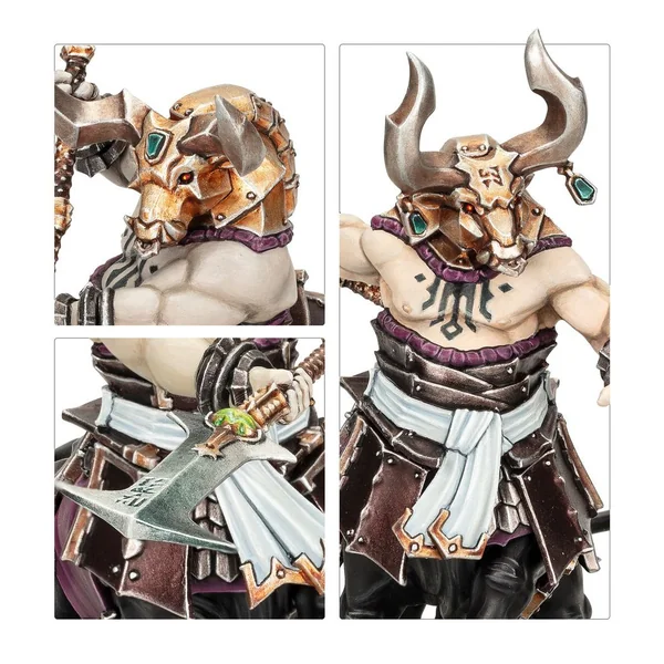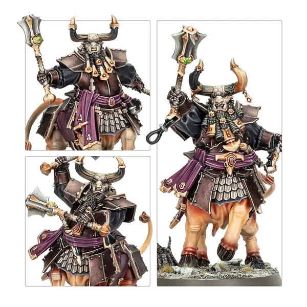 Les Centaures-taureaux sont des mutants censés avoir été bénis par Hashut. Ils sont élevés dans la dévotion due aux demi-dieux, et leurs moindres caprices sont exaucés en échange d’une loyauté fanatique pour le culte du Père dans les Ténèbres. La plupart des Centaures-taureaux sont organisés en hardes piétineuses et ont pour rôle de briser la ligne de bataille ennemie pour démontrer leur supériorité. Grognants et grimaçants, ils galopent à travers le champ de bataille, convaincus de leur puissance, et frappent de leurs masses et de leurs marteaux.