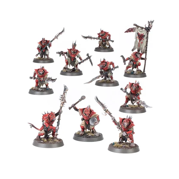 Ce kit en plastique permet d’assembler dix Vermines de Choc, une unité de combat rapproché d’élite pour vos armées de Skavens. Vous pouvez en assembler une comme champion, avec des options de bras et de tête pour le personnaliser. Vous pouvez également assembler un porte-étendard et un musicien pour votre escouade. Les Vermines de Choc sont d’excellents guerriers défensifs, avec des armures et des équipements de meilleure qualité que leurs semblables, et leurs armes d’hast les aident à tenir l’ennemi à distance. Cela fait d’elles les meilleurs gardes du corps des armées de Skavens.