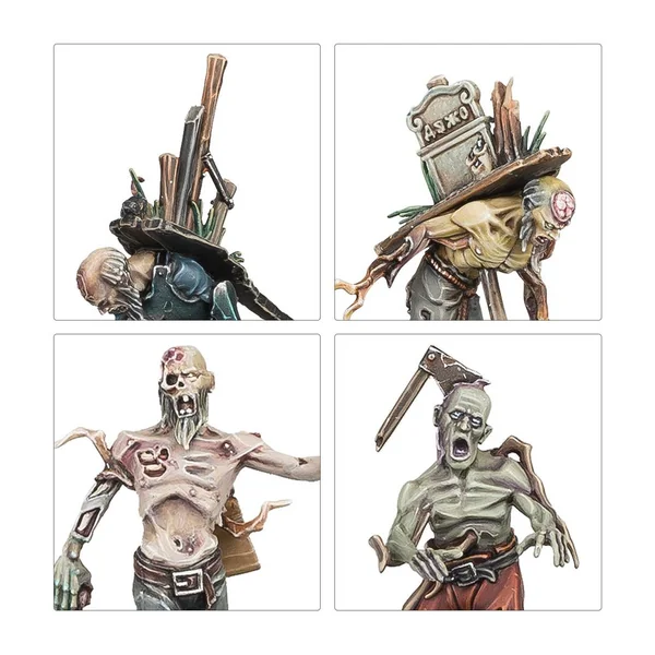 Bien que lents, patauds et individuellement fragiles, les Deadwalker Zombies peuvent menacer les soldats ennemis les plus compétents pour peu qu’ils soient en nombre écrasant. Leur faim monomaniaque les rend étonnamment vifs si des proies s’approchent par trop, et quiconque a le malheur de périr sous leur nombre peut se retrouver dans les rangs des Ruinemânes avant même que la fin de la bataille.