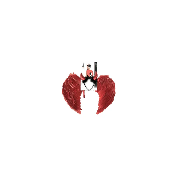 Une paire d’ailes recouvertes de plumes rouges , à enfiler (comme un sac)