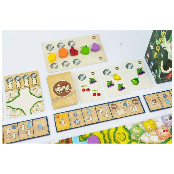 Les actions sont les suivantes : placer un agriculteur, déplacer un agriculteur, agrandir un canal d’irrigation. En effectuant ces différentes actions, vous pouvez faire pousser des fruits, qui sont livrés aux villes, où ils sont vendus pour des dinars.