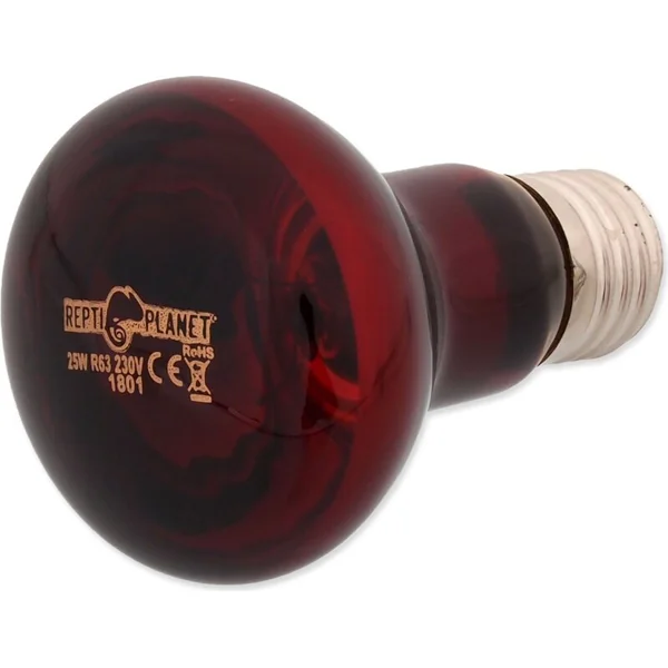 La lampe REPTI PLANET Infrared Heat produit un rayonnement thermique infrarouge et est idéale en combinaison avec des lampes à lumière et UVB (par exemple, Repti Planet Daylight Basking Spot, Daylight Frosted, Daylight Neodymium, Repti UVB) ou un éclairage LED. La coloration est obtenue grâce à la couleur rouge du verre. –augmente la température intérieure du terrarium –la lumière rouge ne perturbe pas le cycle jour/nuit naturel –produit un rayonnement thermique infrarouge –peut également être utilisée comme source de chaleur 24 heures sur 24 –idéale pour l’observation nocturne