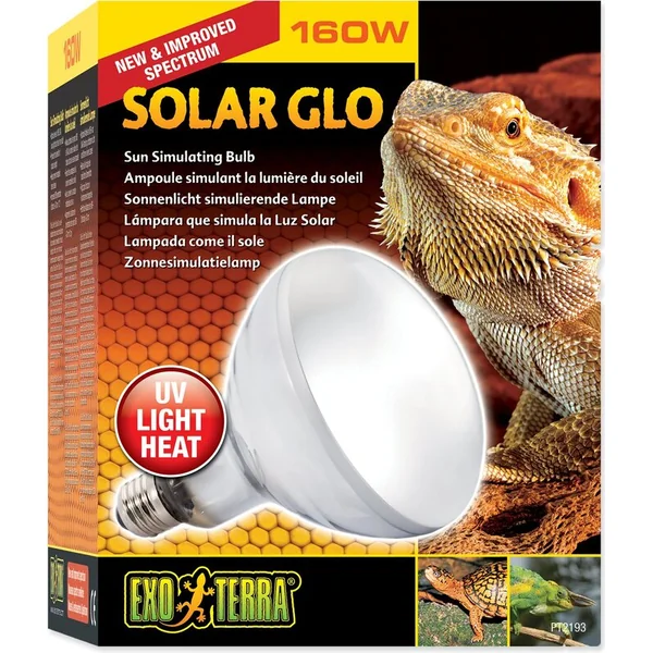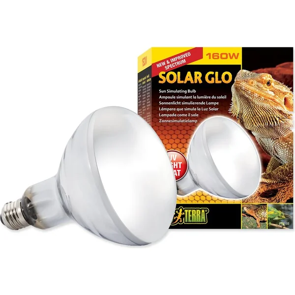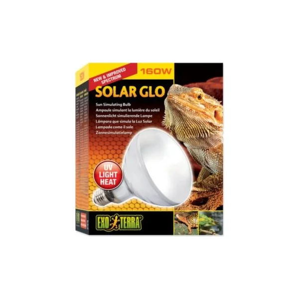Exo Terra Solar Glo est le choix des éleveurs professionnels, car elle fournit le bon équilibre de lumière ultraviolette (y compris UVA et UVB), de lumière visible et de lumière infrarouge (chaleur), dans une seule ampoule.