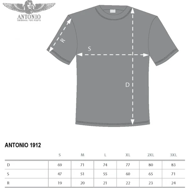 T-shirt pour hommes avec impression Antonio 1912 pour pilotes et modélistes. Manches courtes, 100 % coton avec finition en silicone garantit une sensation agréable au porter. Tissu 200 g/m2, jersey simple tricoté, couleur blanche, emballage cadeau luxueux.