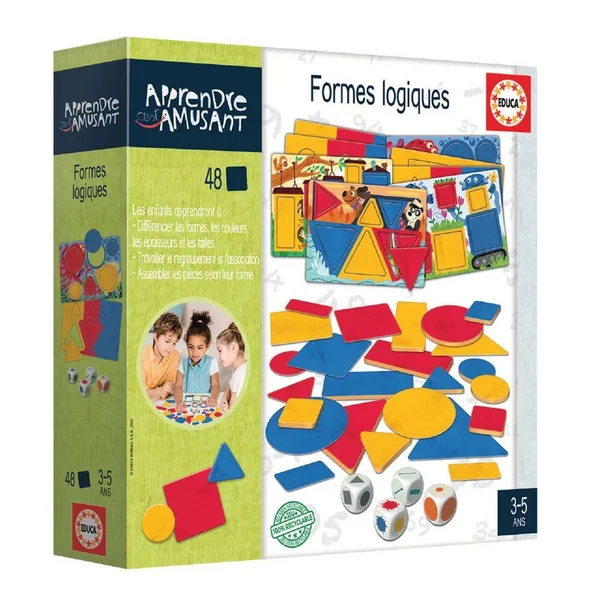 Les formes logiques, l’outil pour travailler sur les formes, les couleurs de base, l’épaisseur et la taille. Acuité visuelle et association. Ensemble complet : feuilles d’éveil avec images et jeux éducatifs. Illustré par David Creighton, illustrateur à succès de livres et de jeux pour enfants. Dynamique : lancez le dé et trouvez les formes qui répondent aux exigences du dé, différentes modalités individuelles et multi-joueurs