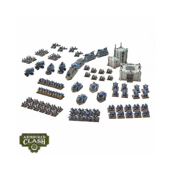 Ce coffret de démarrage contient tout ce qu’il faut pour commencer à jouer à Armoured Clash, en prenant le commandement d’une force vaillante de l’Union of Federated States. Leurs Federal Troopers, polyvalents et bien entraînés, sont soutenus par des équipes spécialisées : de petites unités de soldats pouvant être déployées pour diverses missions. Qu’ils soient équipés de lance-roquettes, de mitrailleuses Gatling ou composés d’automates UR-31E, ces ajouts de puissance de feu sont cruciaux pour les stratégies d’un général de l’Union.