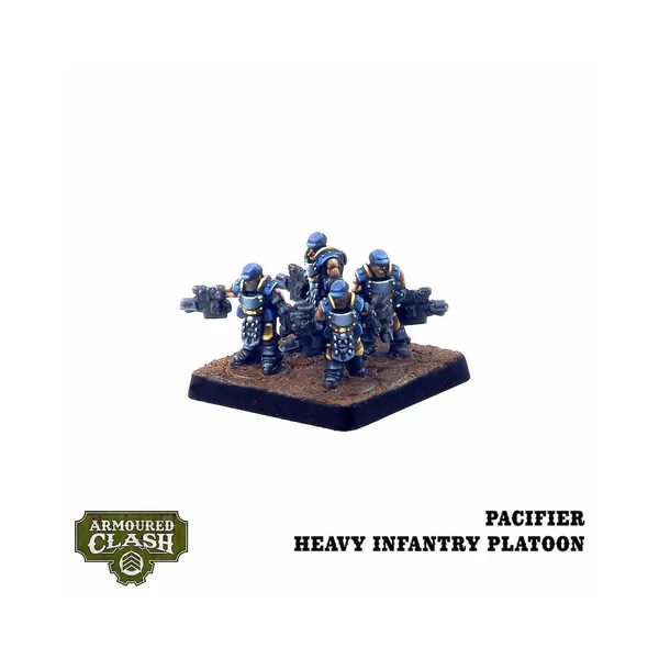À ces troupes d’infanterie flexibles s’ajoutent des unités plus spécialisées, comme les Pacifier Heavy Troopers. Ces vétérans endurcis, réaffectés à des missions plus dangereuses, sont équipés pour l’assaut de bâtiments et les combats rapprochés. Un général particulièrement agressif les fit mener une attaque à bord d’un escadron de chars Lamplighter Flame Tanks. Leur efficacité meurtrière fut telle que les plans standard des Lamplighter incluent désormais des supports d’armes pour les Pacifier Blaster.